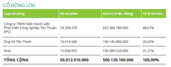 Về cơ cấu cổ đông công ty, hiện tại công ty với hơn 50 triệu cổ phiếu lưu hành với 2 cổ đông lớn là công ty TNHH MTV phát triển công nghiệp Tân Thuận (IPC) với 48.67% và cổ đông cá nhân là ông Võ Tấn Thịnh với 20.02% cổ phần. Có điều đáng chú ý là ông Võ Tấn Thịnh là cổ đông mới của LHG trong năm 2020 và ông hiện không nằm trong thành phần ban lãnh đạo của công ty.