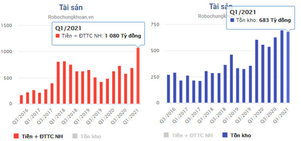 Về cơ cấu tài chính, LHG có cơ cấu tài chính khá mạnh với tài sản chính là các khoản tiền, tương đương tiền và hàng tồn kho. Các mục này đều có xu hướng tăng trong các quý gần đây (Hình 2)