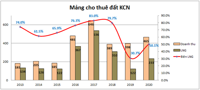 Đóng góp lớn nhất cho doanh thu của công ty chinh là mảng cho thuê KCN nên khi mảng này giảm mạnh thì kết quả kinh doanh của LHG cũng bị ảnh hưởng rất lớn.