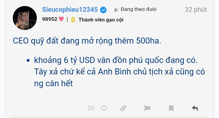 - Lịch sử nhiều cổ phiếu trước kia A7 đầu tư người nhà công ty hay chính chủ tịch bán ra sau đó cổ đều tăng xxx lần, việc họ có công việc cần tiền họ bán đi là chuyện bình thường, còn ý đồ thì khó đoán lắm, có khi mục đích lại là bán tay trái mua tay phải, CEO đợt này nhiều tay to gom vào lắm đó