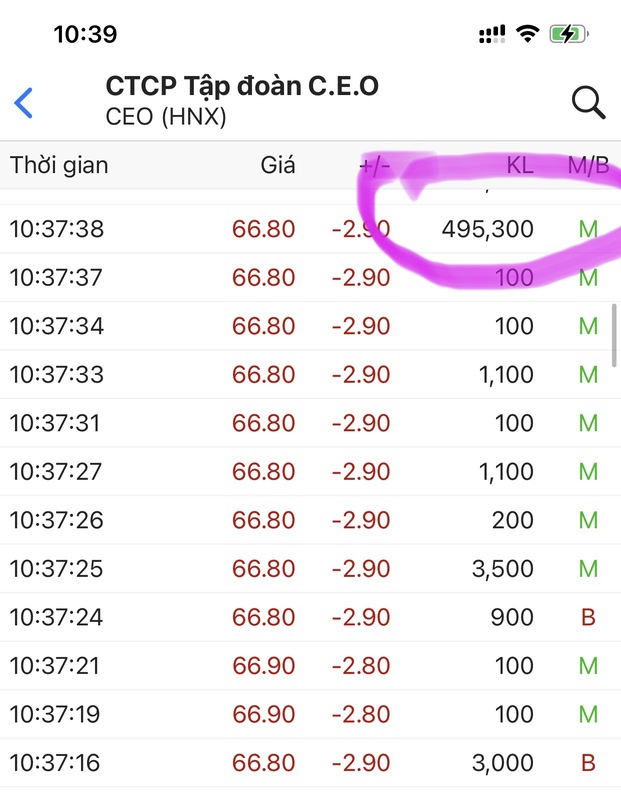 Đầu giờ hấp thụ hết hàng một số ae ngắn hạn. Chiều phi tím lấy đà vượt mốc 100k/cp.