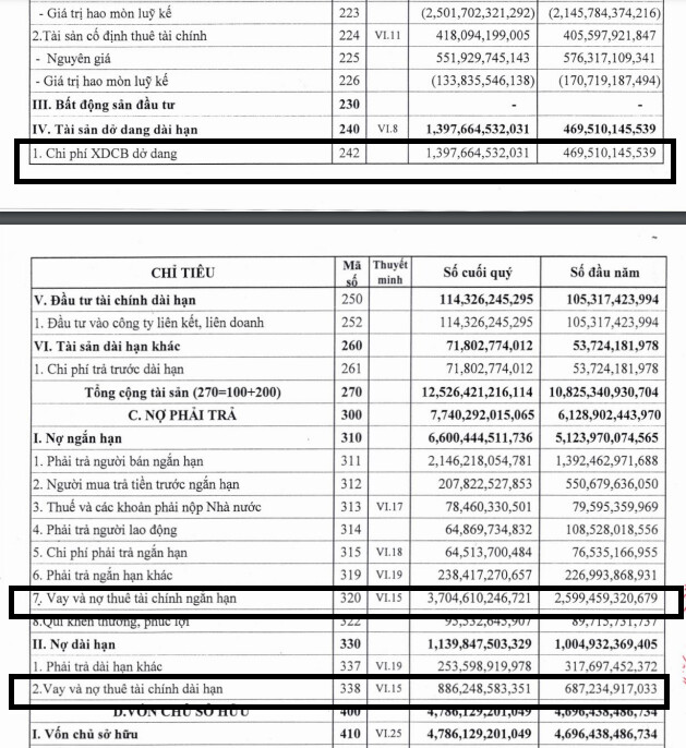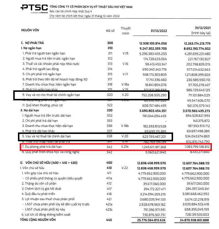 Nợ tài chính rất an toàn so với tiền gửi khủng ở trên, và lưu ý thêm phần bôi đỏ nếu thu được thì khoản dự phòng đó cũng là 1 khoảng lợi nhuận ko nhỏ cho tương lai