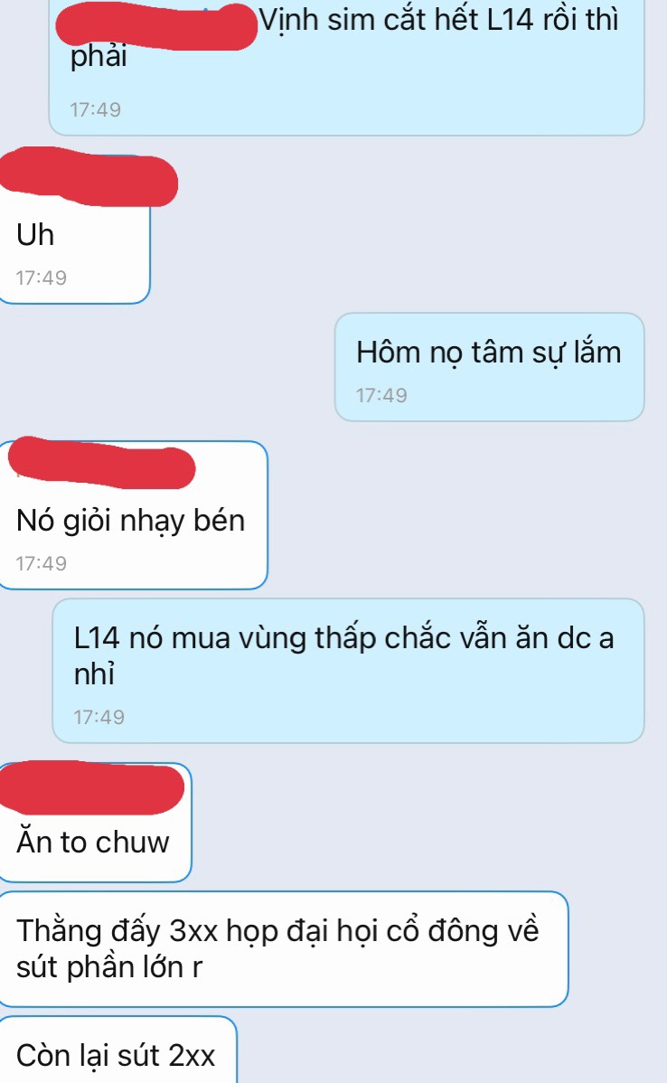 hỏi thằng kia chứng minh sút hết 2xx 3xx đi, hay là mõm. Ngoài 1 chút bán trước cả khi đi đại hội, lúc đó bán 1 chút mua HLD HD2. Chứ nói sau khi đi đại hội thì thằng đó mõm nhôm rồi. Che làm gì, toàn thằng dùng tk ảo làm điều khuất tất.
