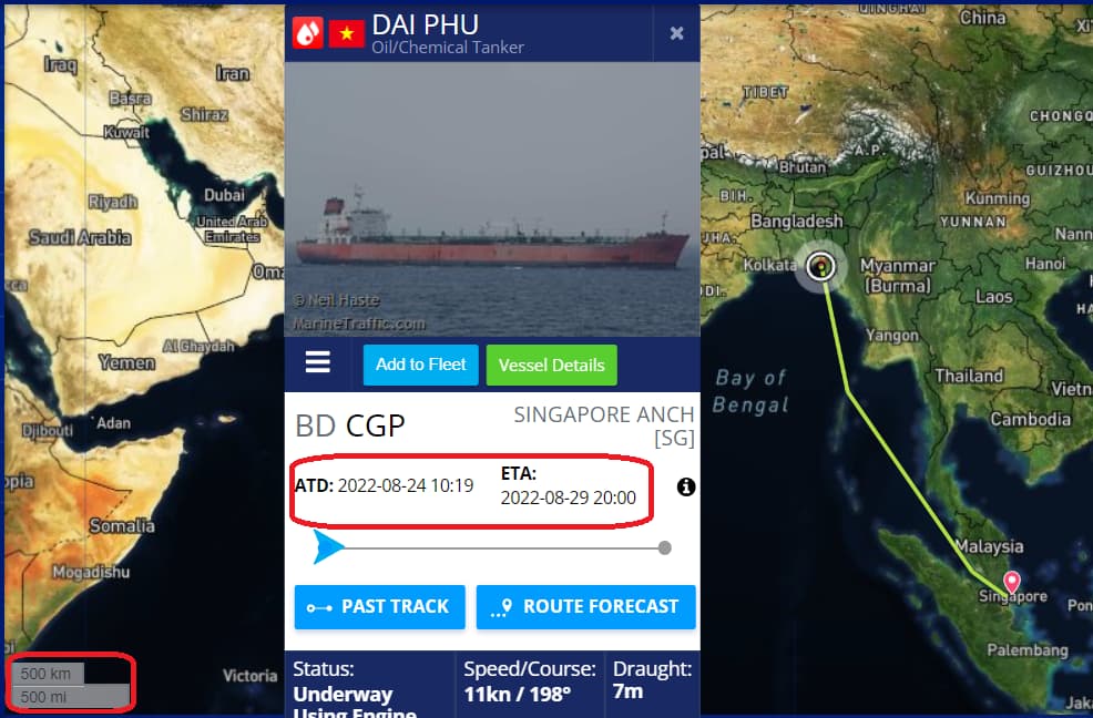 Trong khi tàu DAI PHU 50.500 dwt của VOS chạy tuyến Bangladesh- Singapore 3000km chỉ trong 5 ngày