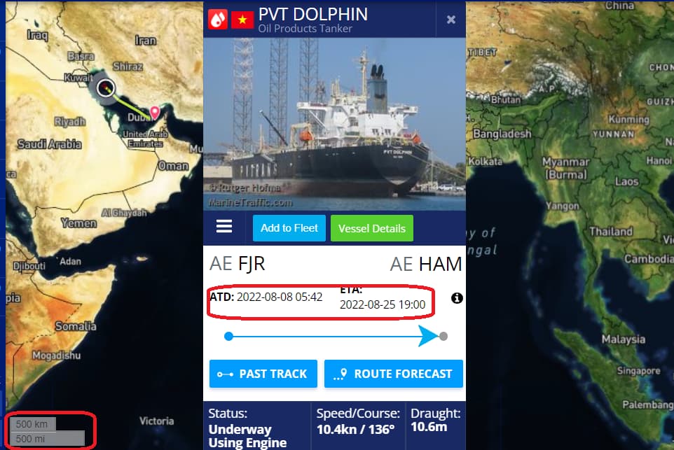 Tàu DAI PHU của VOS to hơn, chạy quảng đường gấp 5 lần tàu DOLPHIN của PVT nhỏ hơn, nhưng thời gian tàu VOS chạy chỉ bằng 1/3 tàu PVT
