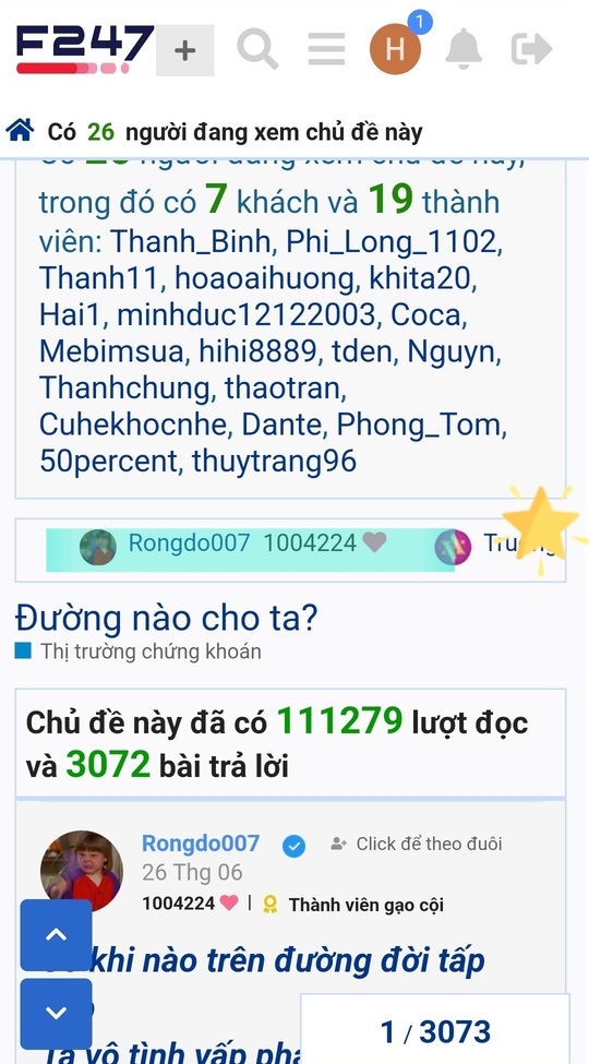 Chào anh Rồng, chào cả nhà. Chúc mọi người tuần mới tốt lành. Em bị covid bỏ chứng trường 10 ngày nay mới ngoi lên lại ![]()