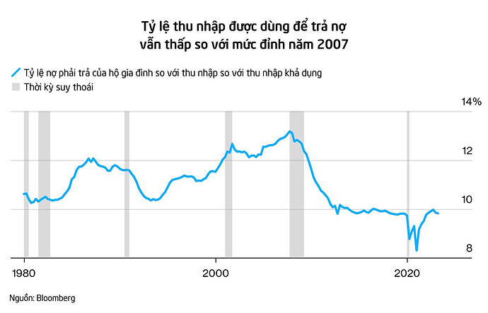 Dữ liệu của Fed cho thấy, các hộ gia đình Mỹ đã chi 9,8% thu nhập khả dụng để trả nợ trong quý II, tăng từ mức 8,3% trong quý I/2021. Tuy nhiên, con số này vẫn thấp hơn mức đỉnh 13,2% trong năm 2007.