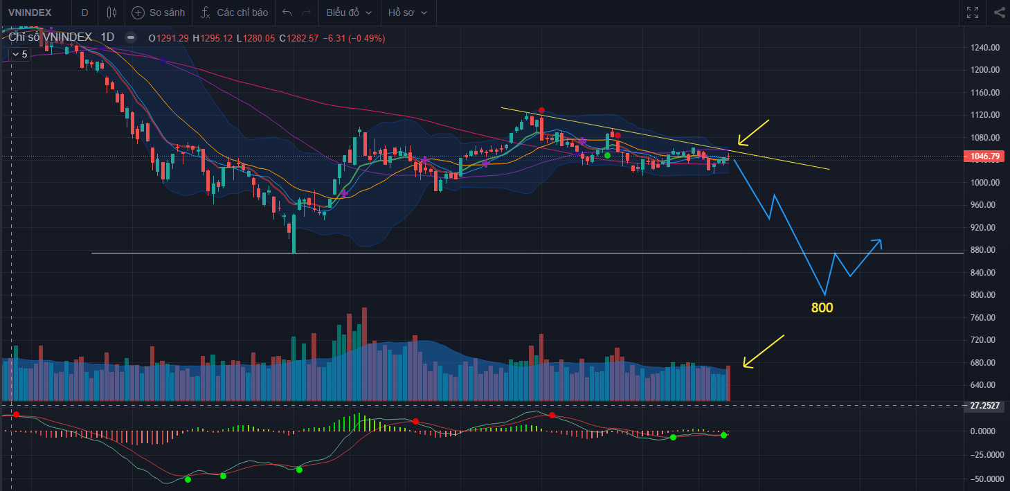 Về kỹ thuật: Vnindex vẫn ở trong trend giảm, ba bốn lần ko qua nổi cản, Các cổ leader đều íu xìu xìu rồi (LCG, HSG, HCM …)