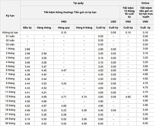 Song song đó, 6%/năm là mức lãi suất cao nhất áp dụng cho khoản tiền gửi online với kỳ hạn gửi tiền 36 tháng.