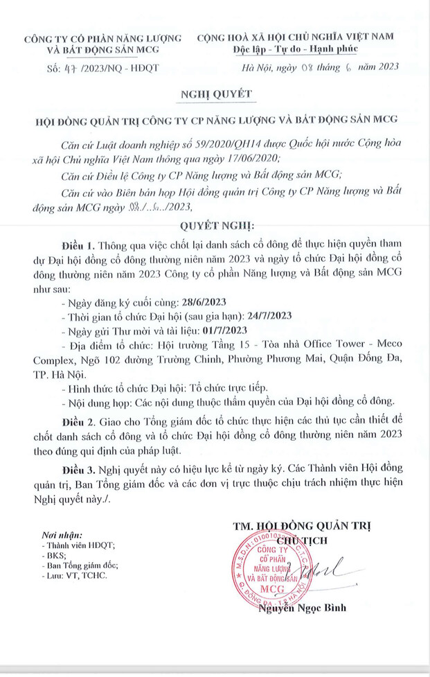Chúc mừng tất cả cổ đông MCG