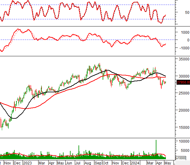 Vùng 28,000-29,500 (tương đương đỉnh cũ của tháng 09/2023) đã hỗ trợ tốt cho giá trong đợt điều chỉnh vừa qua.