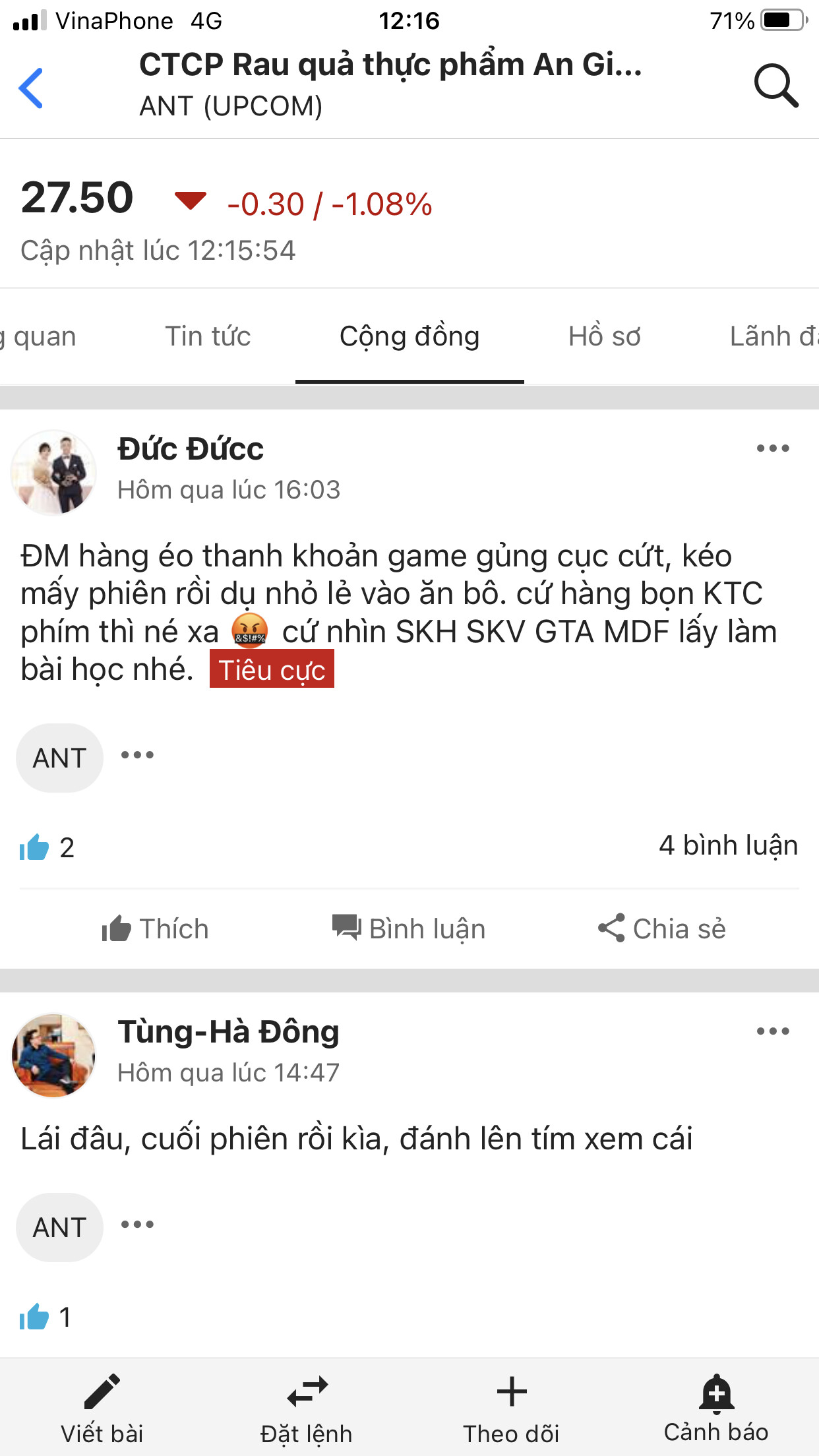ANT được cá voi thâu tóm hết rồi. Hàng về cũng k có lực bán. Bác nào mà bán sau này nhìn tiếc lắm đó