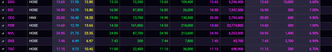 Điển hình như dxg, dig, nvl, hpg,…