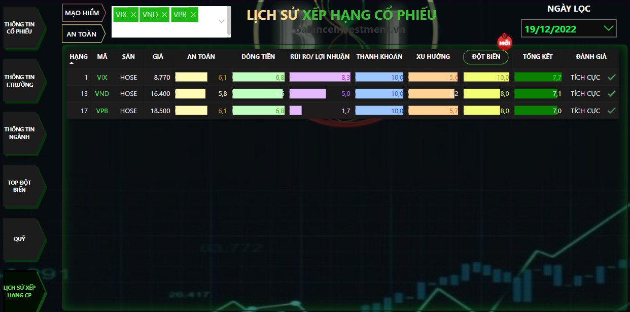 Nhà mình đang chủ lực 3 mã VIX VND VPB