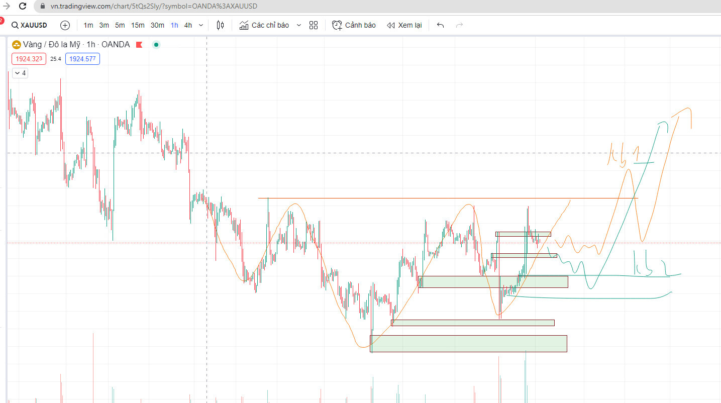 KB1 : Giá đi sw quanh vùng 1921-1927 tạo TR (khung giá) ở đây xong đi lên phá đỉnh và quay lại test. Khi đó ta sẽ buy lên