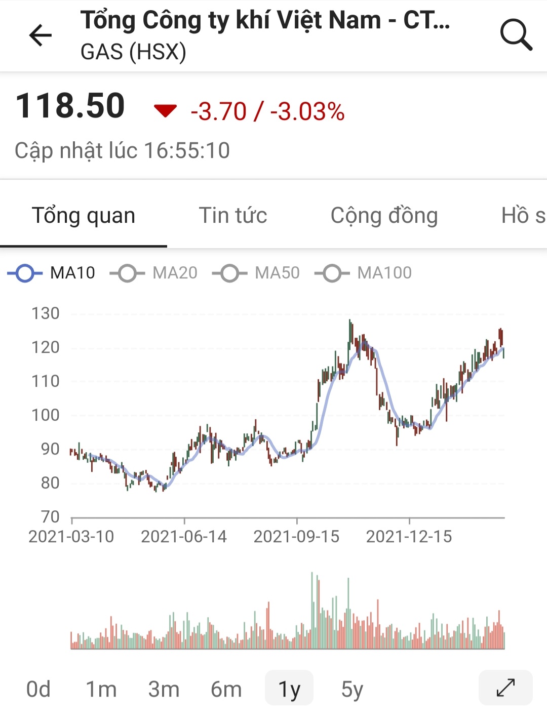 GAS đang có dấu hiệu tạo đỉnh lần 2 ở vùng giá 12x.x, nên bác mua mới ngay vùng đỉnh là hơi Fomo rồi. Tuy nhiên, nếu lỡ fomo 12x.x rồi thì có thể giữ cho dài hạn. GAS đang có dấu hiệu điều chỉnh rung lắc, vùng hỗ trợ trong nhịp rung lắc này là 105-110