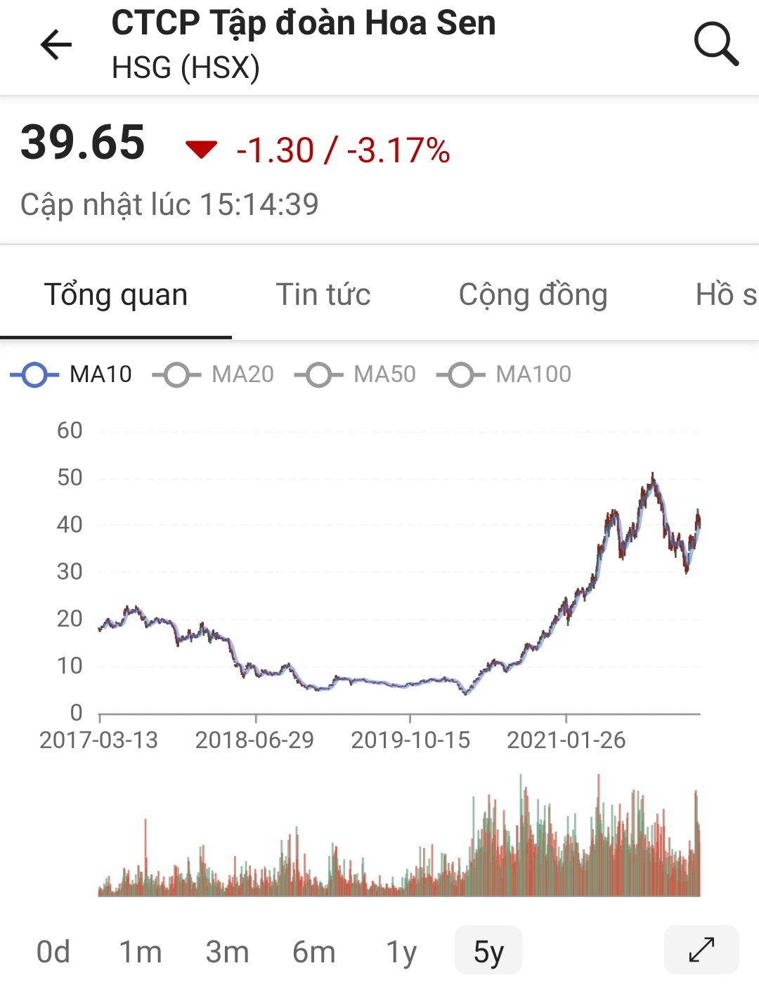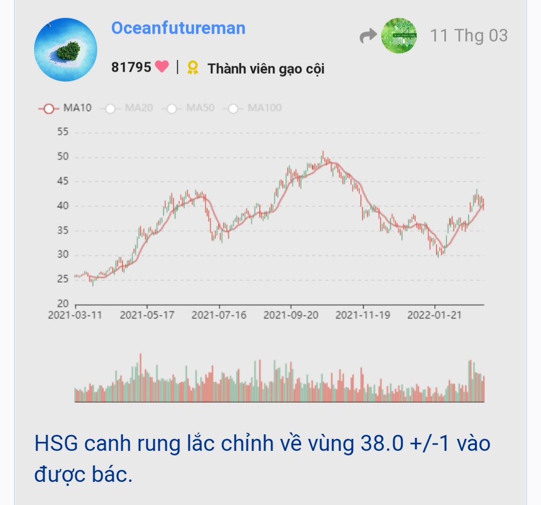 HSG chỉ là rung lắc trong form sideway uptrend và hồi trở lại. Vùng hỗ trợ trong nhịp rung lắc này là 36.x-38.x