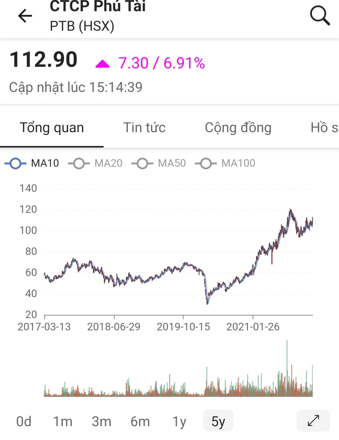 Giá cp 2 mã PTB và VCS đều trong vùng target trung hạn nên cần cân nhắc.