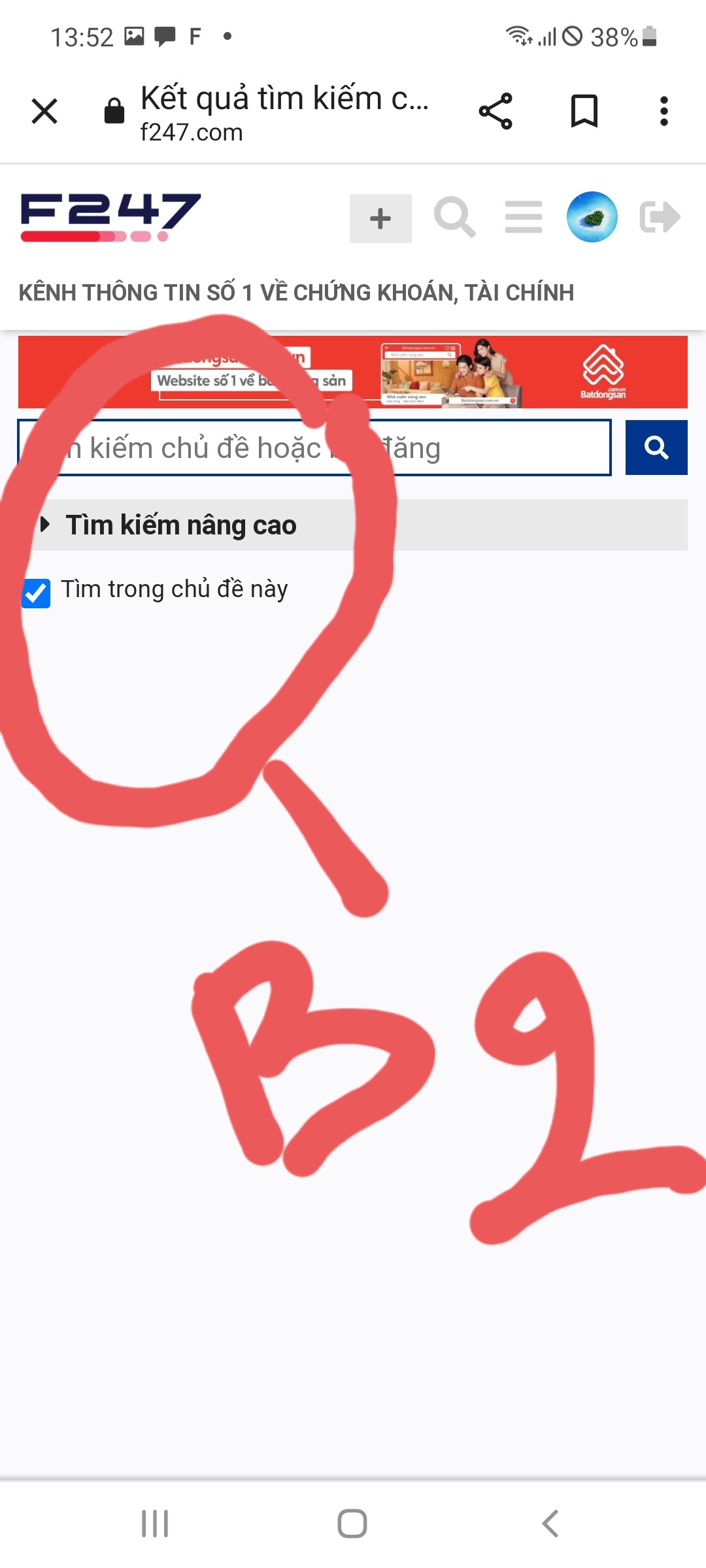 B1: bấm vào biểu tượng như kính lúp ( biểu tượng search) gần avarta