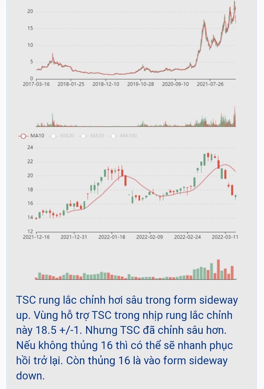 PVP đang rung lắc chỉnh trong form sideway up và hồi. Vùng hỗ trợ trong nhịp rung lắc này là 17.x- 19.0, thủng 17.0 là vào form sideway down trở lại.