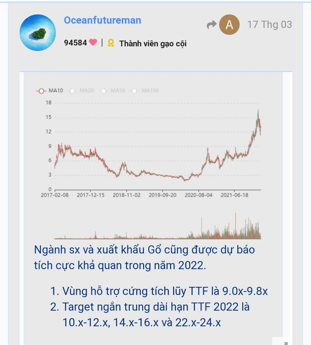 Nếu TTF có rung lắc chỉnh trong form sideway uptrend thì vùng hỗ trợ trong nhịp rung lắc này là 15.0x-16.5x