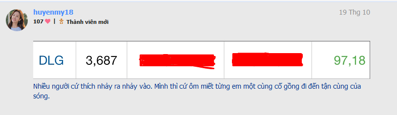 DLG đang trên hành trình về mệnh 10 và vượt mệnh 10 lên 14.x-16.x ( DLG đã vượt 8 thành công). Tuy nhiên chúng ta không nên all in 1 cp mà phải chia ra. Có thể chia tỉ lệ DLG nhiều hơn mã khác nhưng không nên all in vào 1 DLG.