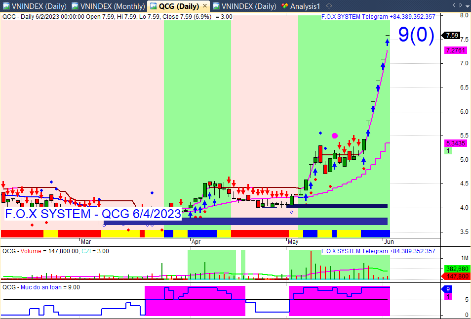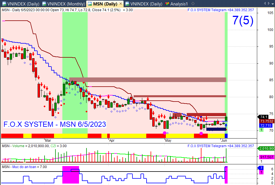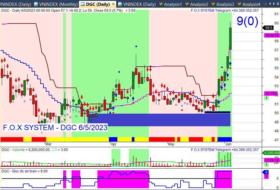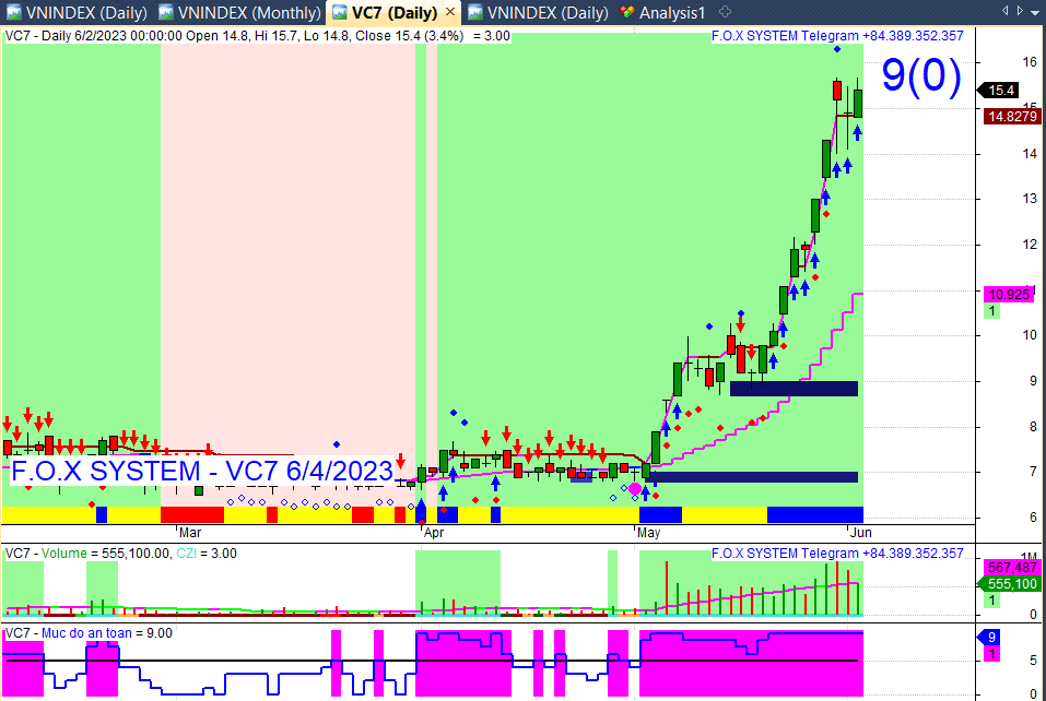 Và ở dưới cùng có chỉ số mức an toàn. Thang đo 0 đến 9. Trên 5 có màu tím. Nên tham gia ở đầu vùng tím và nếu có ý định vào giữa nhịp thì chọn điểm số mức an toàn chỉnh về 5 hoặc 6 bật lên là cũng vào được. Ai mà mua giữ dài thì cứ mua từ đầu vùng tím và giữ cho đến khi hết tím.