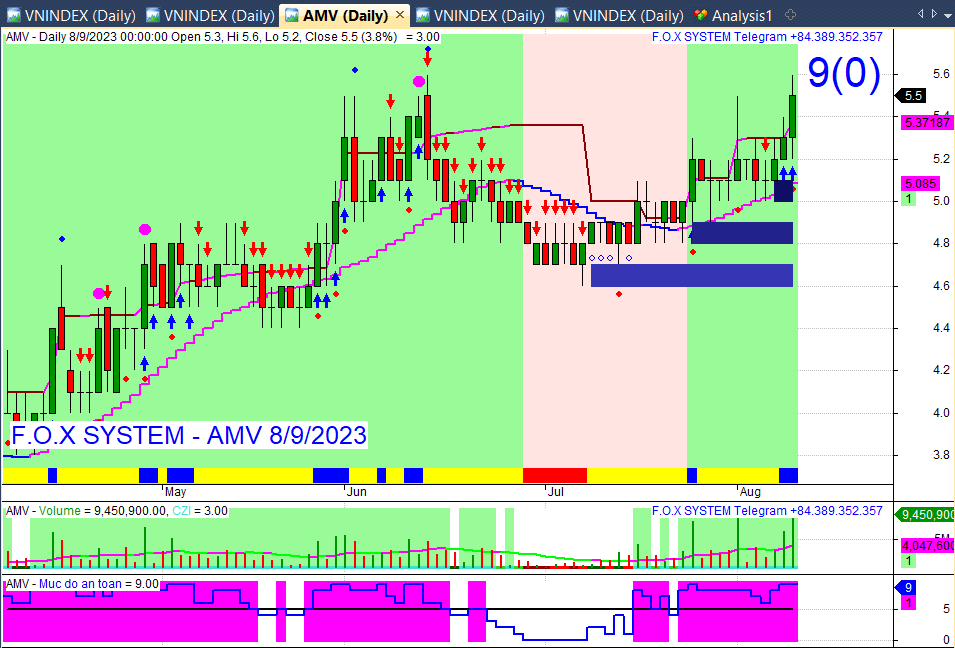 Chỉ số Vnindex cuối ngày 9/8/2023