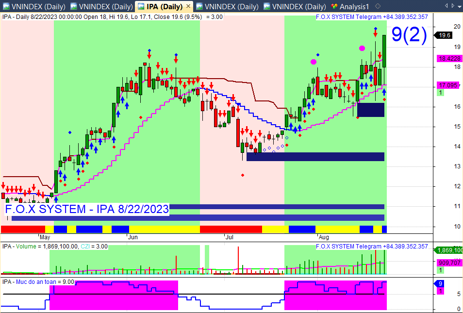 Chuẩn bị bùng nổ khối lượng IPA: 19.1 (+1.2|6.70%) – vol: 1314k2023-08-22 13:45:56