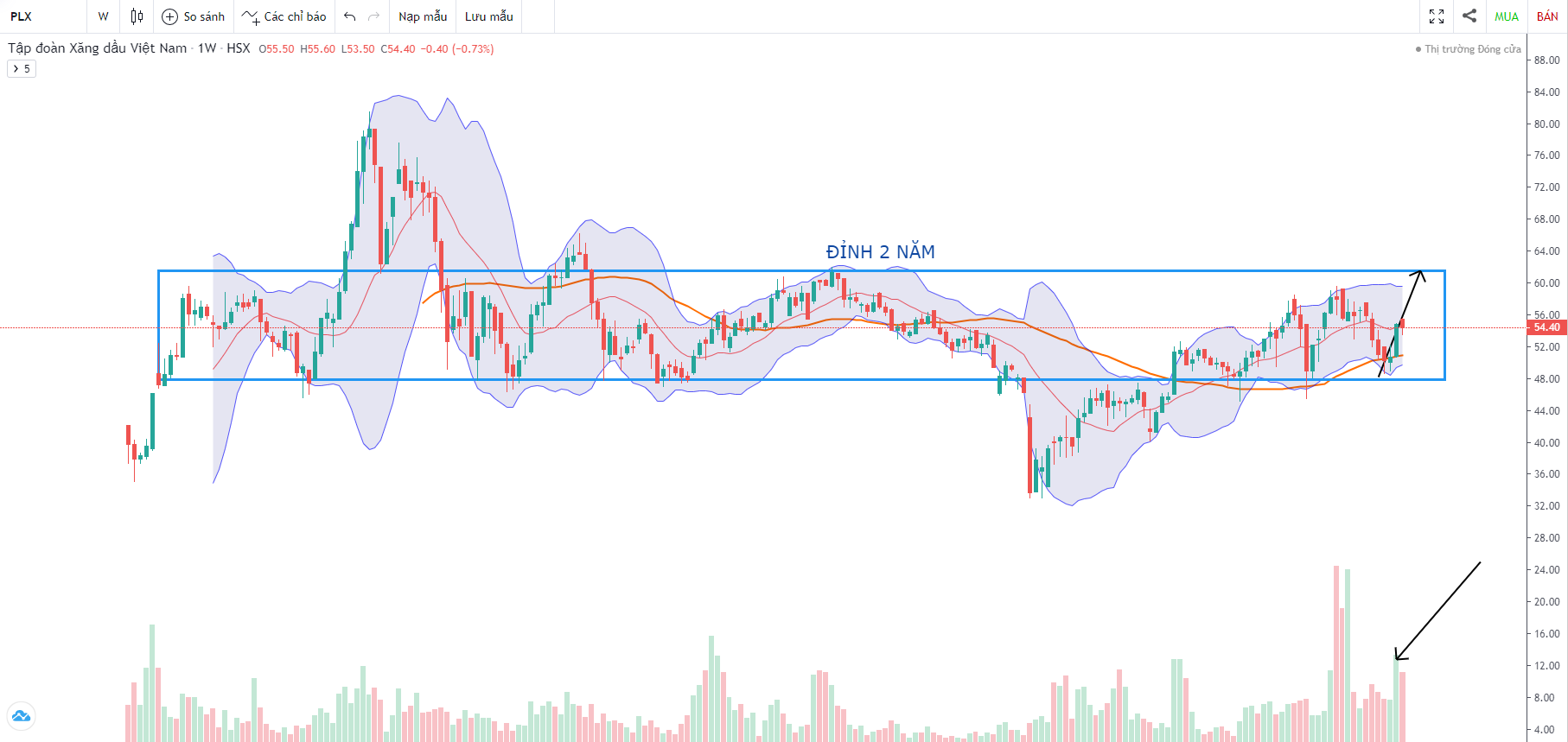 KHUYẾN NGHỊ: Mở mua PLX vùng 53-55, vượt đỉnh 60 mở mua gia tăng.