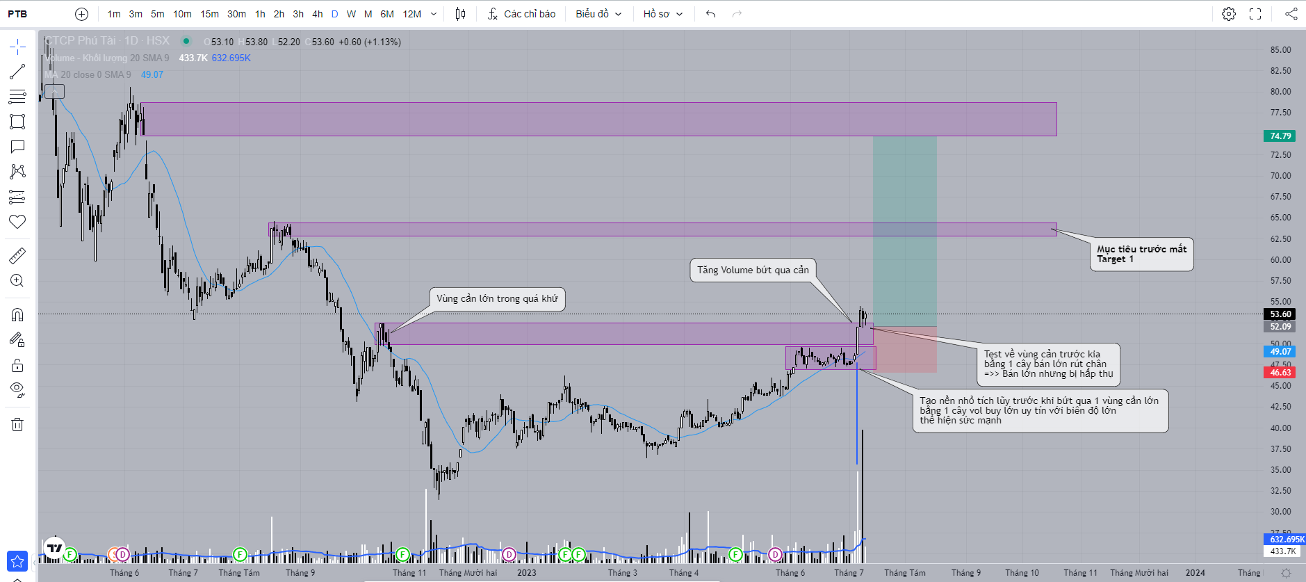 - Về PTKT, PTB vừa tăng volume bứt qua 1 vùng cản lớn bằng 1 cây nến volume uy tín