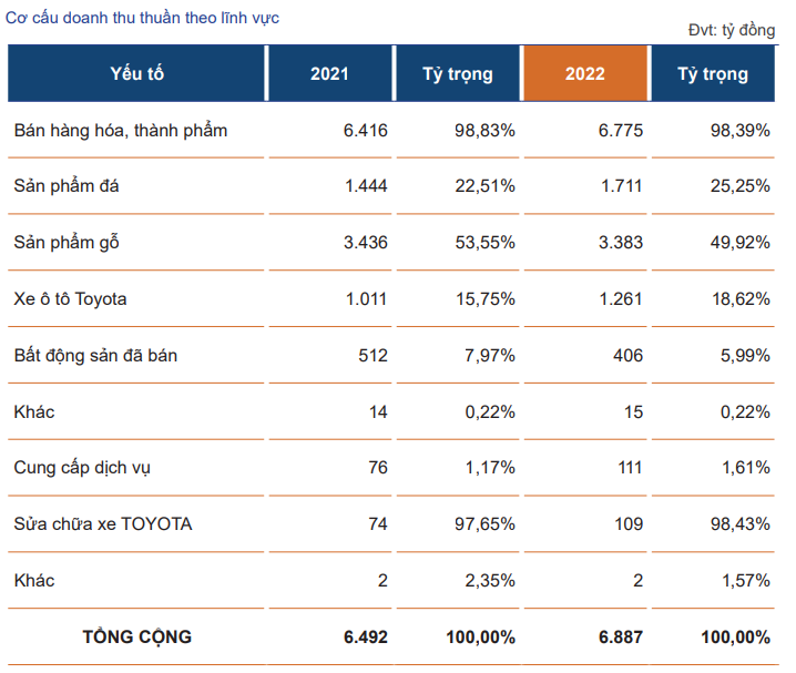 Mảng gỗ chiếm doanh thu lớn nhất của PTB – chiếm ~49% cơ cấu doanh thu