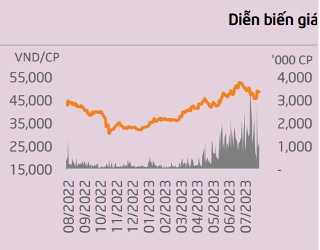 Cổ phiếu đã có nhịp tăng đáng kể từ vùng nền đáy, NĐT đã mua vào trước đó ưu tiên Nắm giữ. Thời điểm gia tăng hợp lý khi cổ phiếu vượt được đỉnh cũ 53 đi kèm thanh khoản đạt tiêu chuẩn break out.