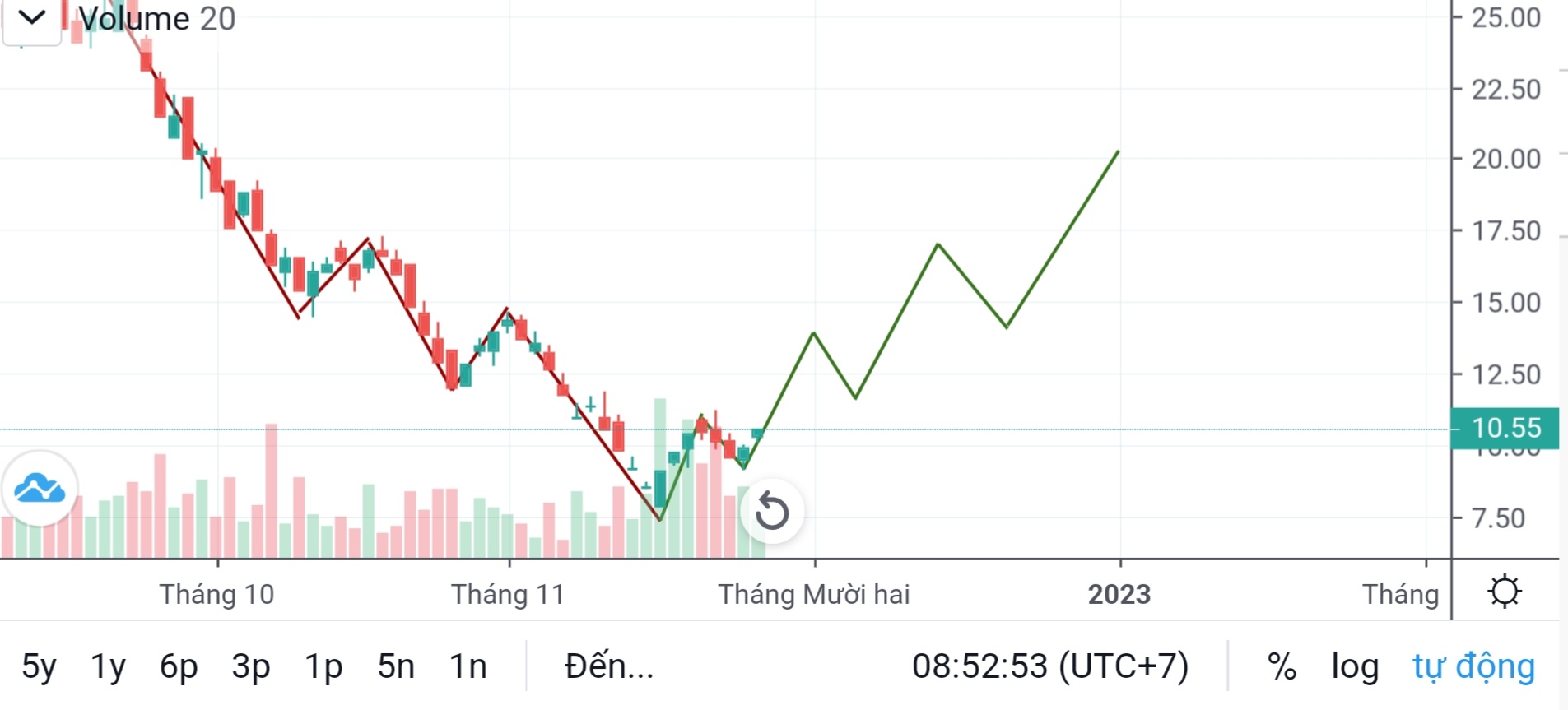 Sư phụ bảo khi thị trường chung Vni và từng cp riêng lẻ tạo đáy thành công ( sư phụ khẳng định trên 80% rồi) thì khả năng cao ( trên 75%) sắp tới đa số các cp ( trên 60%) sẽ vận động theo xu hướng chart như trên.