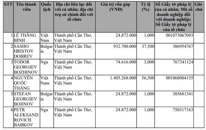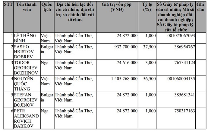 Ngày 29/01/2024, cơ cấu thành viên của Danhson VN bổ sung thêm 1 người là ông Lê Thăng Bình - đại diện pháp luật Công ty, tỷ lệ sở hữu 1%. Tỷ lệ của ông Bình được sang từ phần vốn góp của ông Dobrev và ông Lê Quốc Thắng (mỗi người 0.5%).