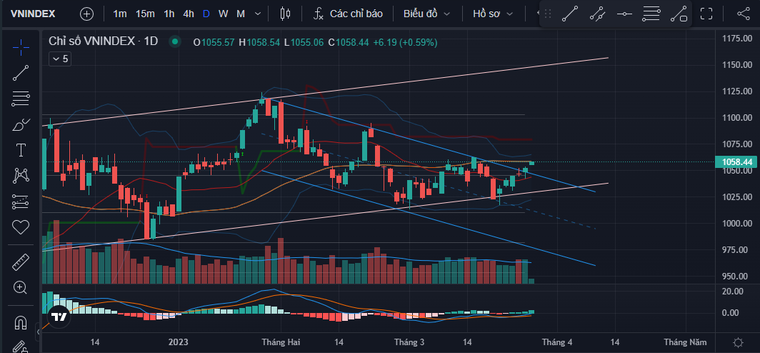 VNIndex đã vượt lên downtrend tháng từ tháng 2/2023 và tiếp tục đà tăng.