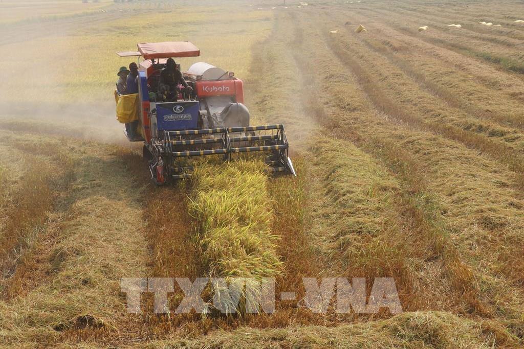 Thu hoạch lúa Đông Xuân 2023-2024. Ảnh: Nguyễn Văn Trí – TTXVN
