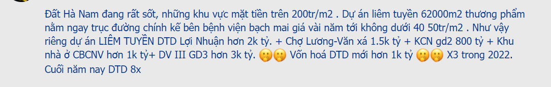 BCTC tồn kho hơn 60 tỷ đã khởi công rồi đấy, BCTN cũng có, hoặc bác search: Khu đô thị thành đạt , liêm tuyền là ra.