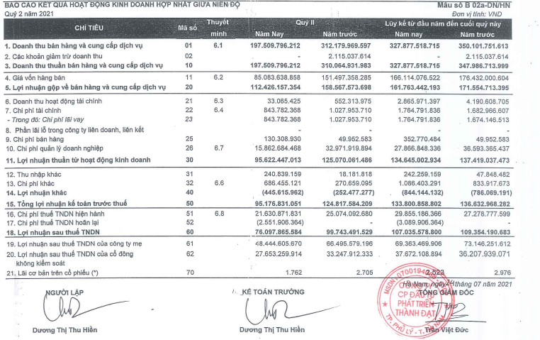 DTD vừa ra lò BCTC Q2.2021. Mời anh em vào bình phẩm