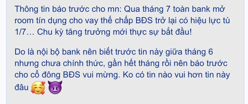 mình cũng nghe người làm trong bank thông tin sang tháng 7 mở lại room tín dụng. k biết là tin đồn hay như thế nào nữa bạn