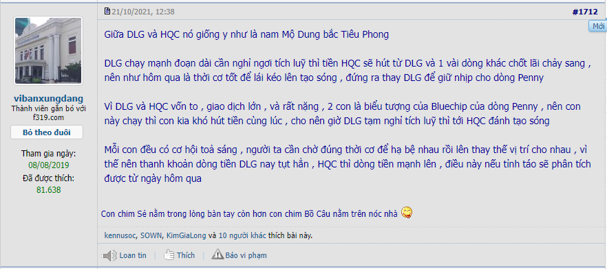Haha. Thôi kệ. Chỉ mong bác 8 bình yên bên ấy. Còn mình thì nhỏ nhoi có hay không trong Ấy không ảnh hưởng tới ai. Chắc Mod ấy mua sll HQC ấy mà. Kaka. Thôi cầu cho DLG tăng mạnh mẽ trở lại.