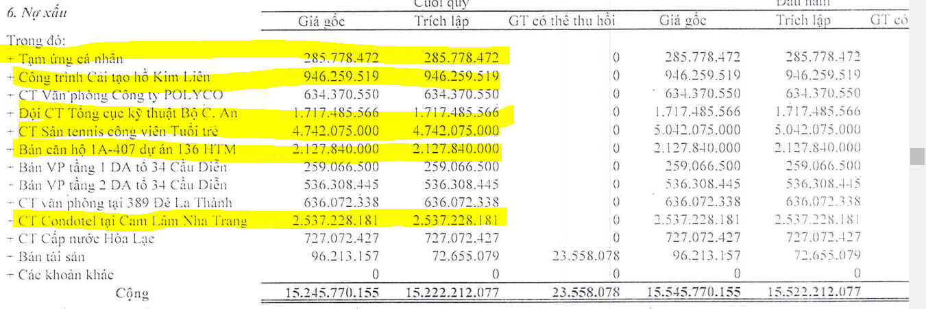 Những khoản nợ xấu những đối tượng cho thấy toàn hạng ko uy tín, cty rất nhỏ, cái này rất có thể là rút ruột cty. Rút ruột nó nằm ở đây đó các bạn. Tức là giờ tôi là chủ tịch HĐQT tôi cho anh tôi vay với lãi suất 10%/năm, sau đó tôi ghi nợ xấu thì rõ ràng anh tôi có dc số tiền đó. Vì tôi là chủ tịch nên sẽ ko có chuyện kiện tụng gì ở đây cả, hay như tôi cho 1 doanh nghiệp anh tôi lập ra là CT sân tennis công viên Tuổi Trẻ (nghe cái tên là thấy xàm rồi, lập ra để rút ruột) vay 1.7 tỷ sau đó ghi nợ xấu, thế là rút ruột thành công. Rồi cty codotel tại cam lâm nha trang (nghe cái tên là có vấn đề rồi, thực tế có thể chỉ là 1 cái nhà nghỉ thuộc sở hữu của gia quyến nào đó của lãnh đạo). Rồi bán tài sản phát sinh nợ xấu? Cái gì thế? Bán chịu cho anh em nhà chủ tịch à sao mà nợ xấu thế.