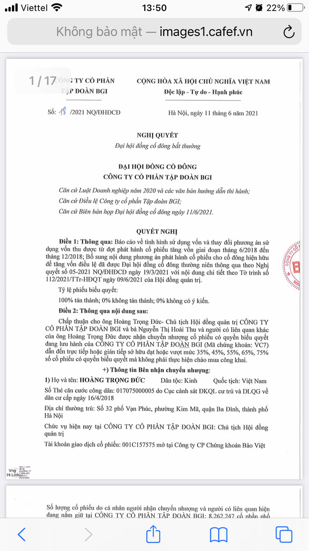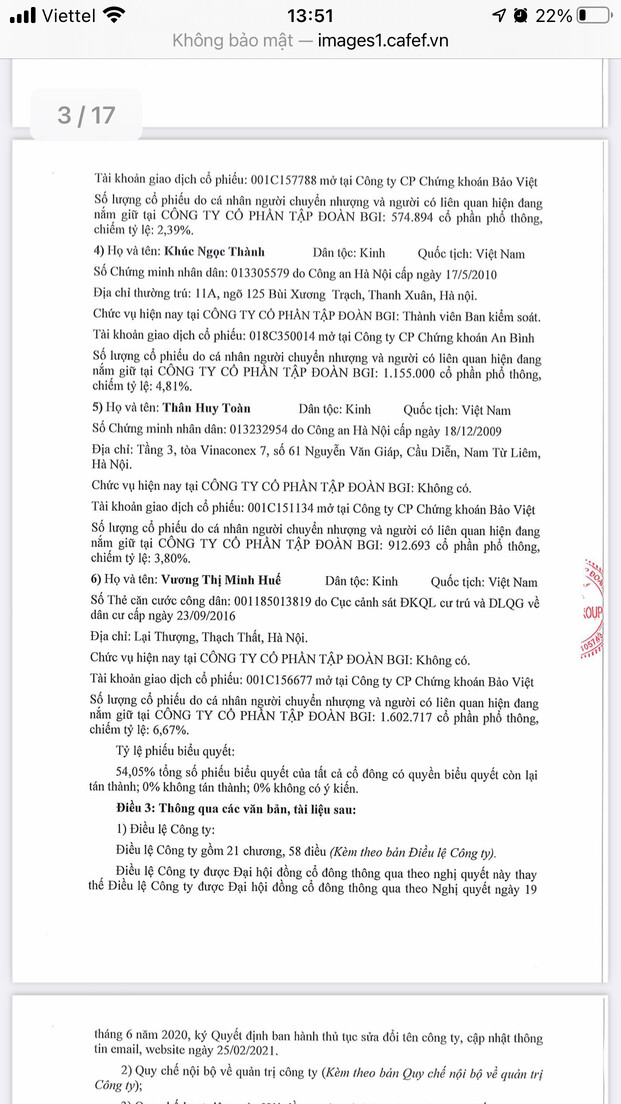 Tất cả những nội dung gì liên quan cổ đông trong buổi họp DHCD đã được ban lãnh đạo cụ thể bằng văn bản ký tươi đóng dấu đỏ và công bố trên trang web công ty. Mời bác bớt chút thời gian ghé vào tìm hiểu. Bác nhớ tìm theo cú pháp tập đoàn BGI nhé