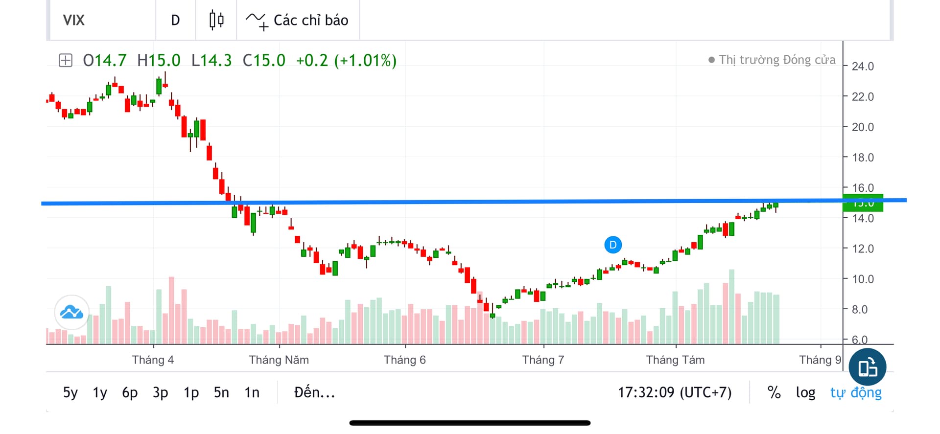 Chart Vix đẹp như tranh; chúc mung bác @ Sad